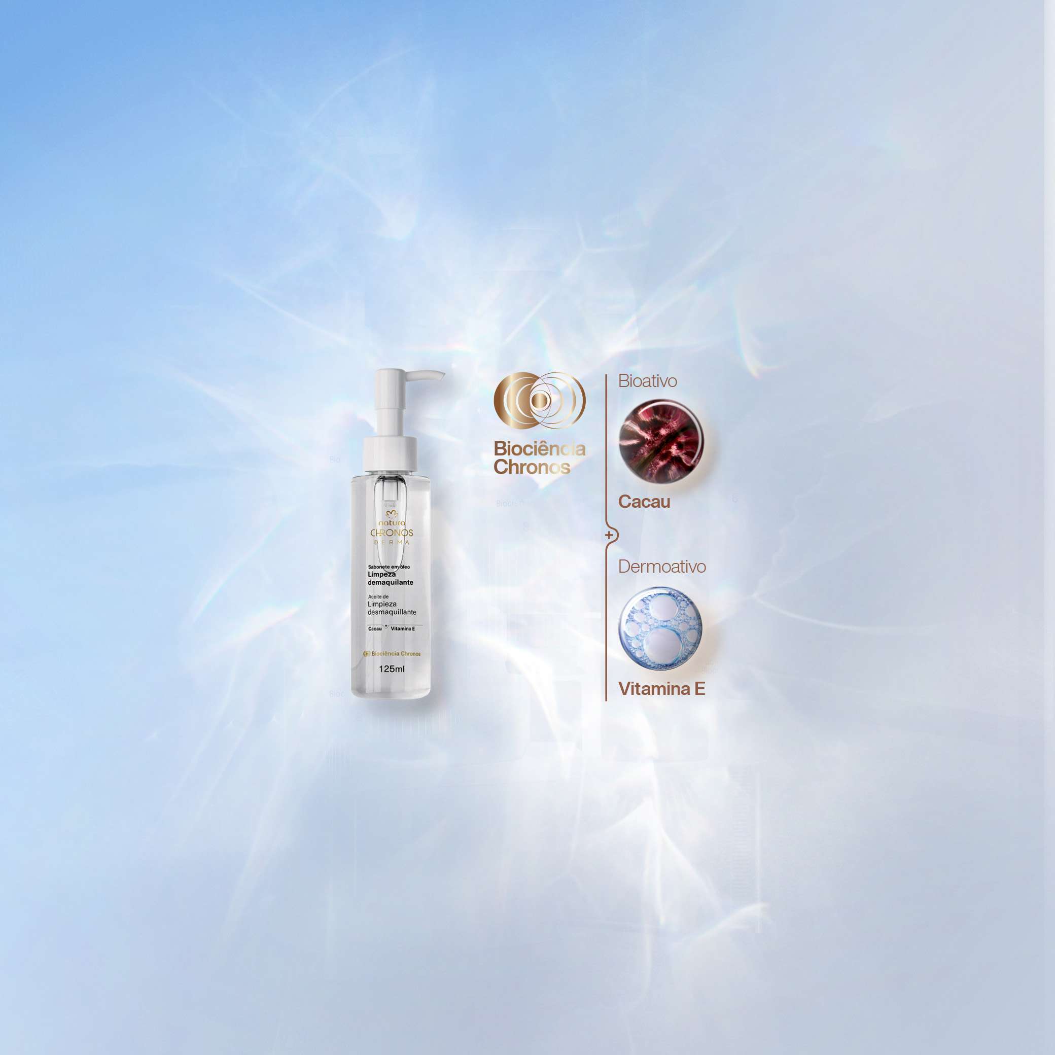combinación de potentes bioactivos de la naturaleza y dermoactivos para cuidar tu piel. el bioactivo Cacao repone los componentes esenciales de la barrera cutánea, mientras que el dermoactivo Vitamina E actúa como antioxidante y protege contra el envejecimiento prematuro