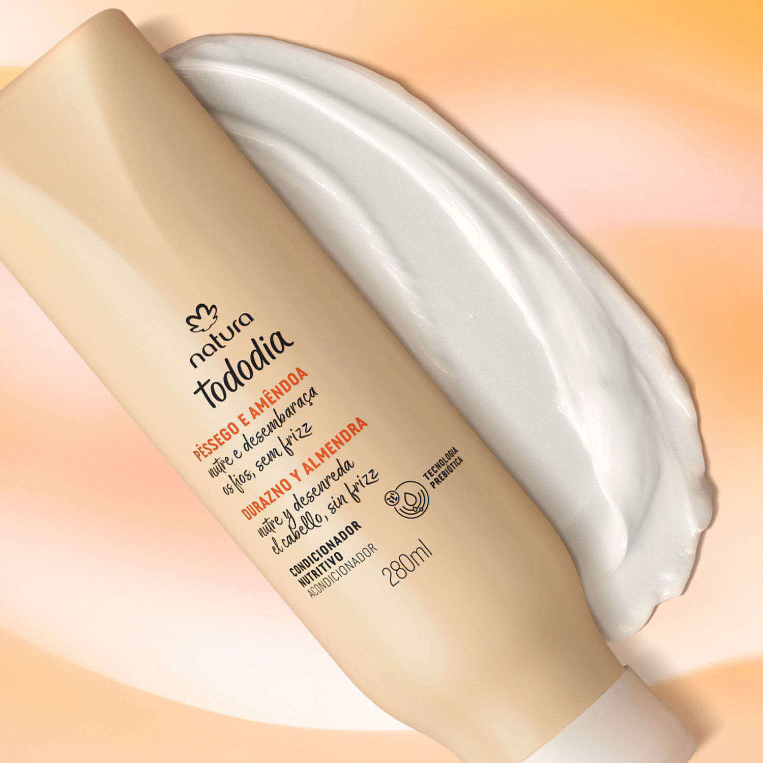 Natura Tododia combina los mejores nutrientes para tu cabello, con prebióticos que protegen y equilibran el cuero cabelludo. todo para que tu cabello luzca más bonito y saludable cada día. la línea con aceite de almendra nutre y devuelve el brillo natural