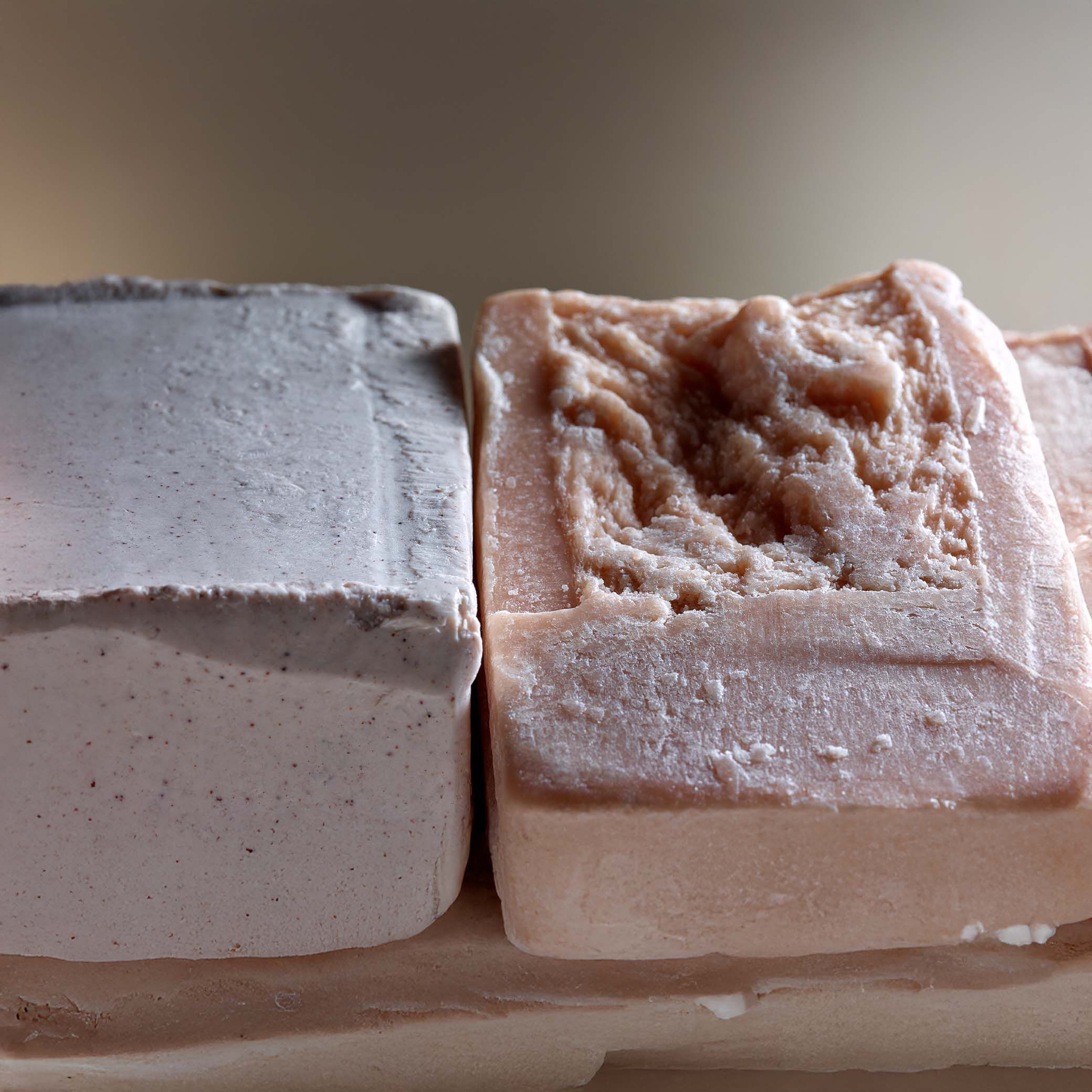 desliza la barra de jabón exfoliante Natura Biome sobre la piel húmeda con movimientos circulares.