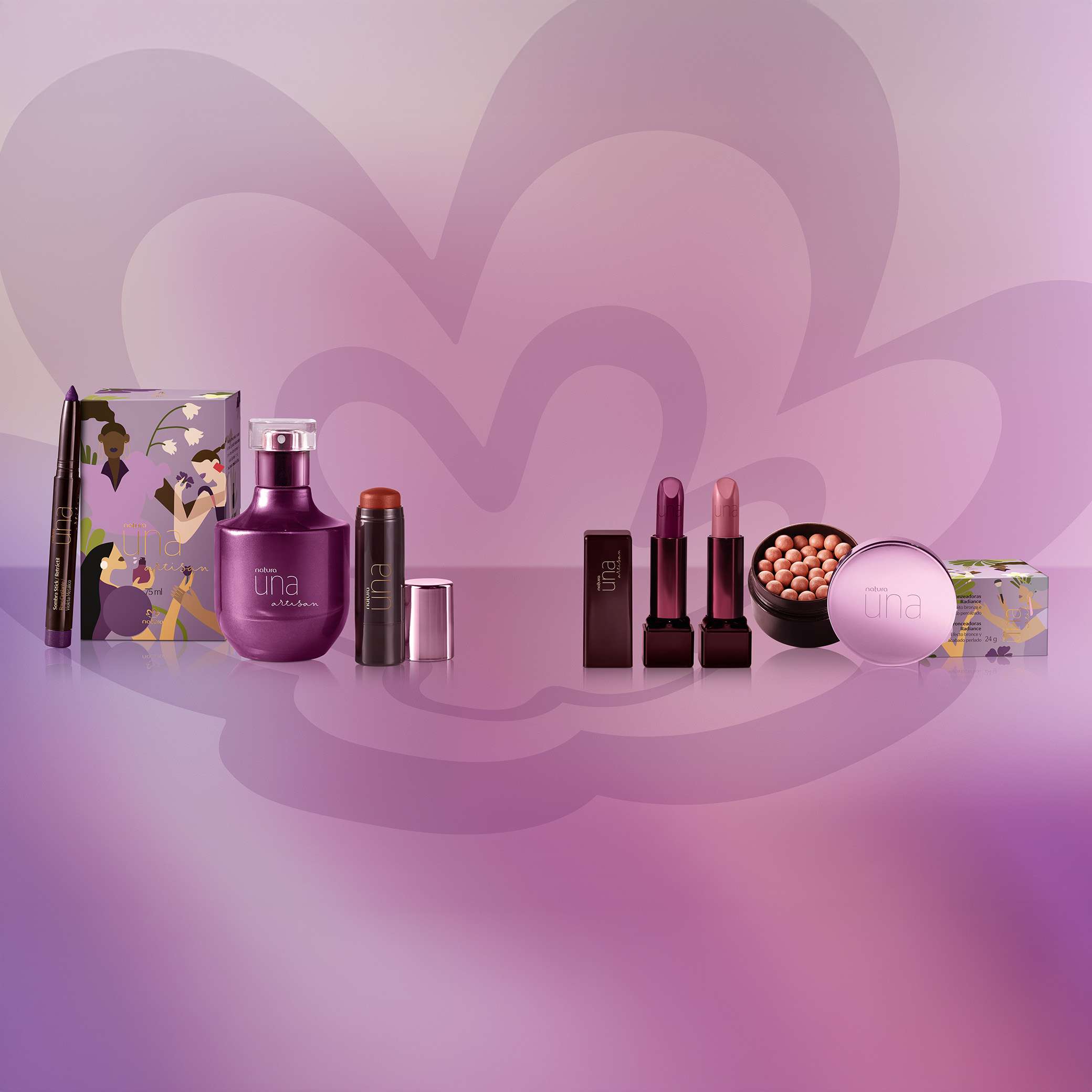 la colección presenta un arte visual femenina y llena de significado, con envases inspirados en la fragancia y los ingredientes de Una Artisan. ilustraciones que reflejan la esencia de la colección: unión, autoconfianza y belleza libre de estereotipos
