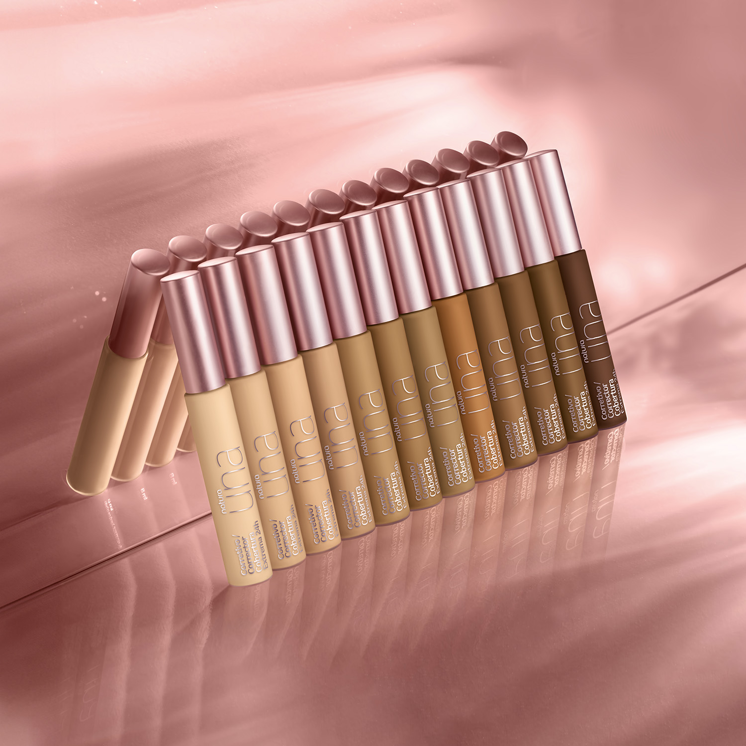 el Corrector Cobertura Extrema 24h una disimula signos de cansancio y neutraliza imperfecciones. su fórmula ligera y libre de aceites contiene vitamina E y es resistente al agua y al sudor, proporcionando un efecto mate de alta cobertura por hasta 24 horas