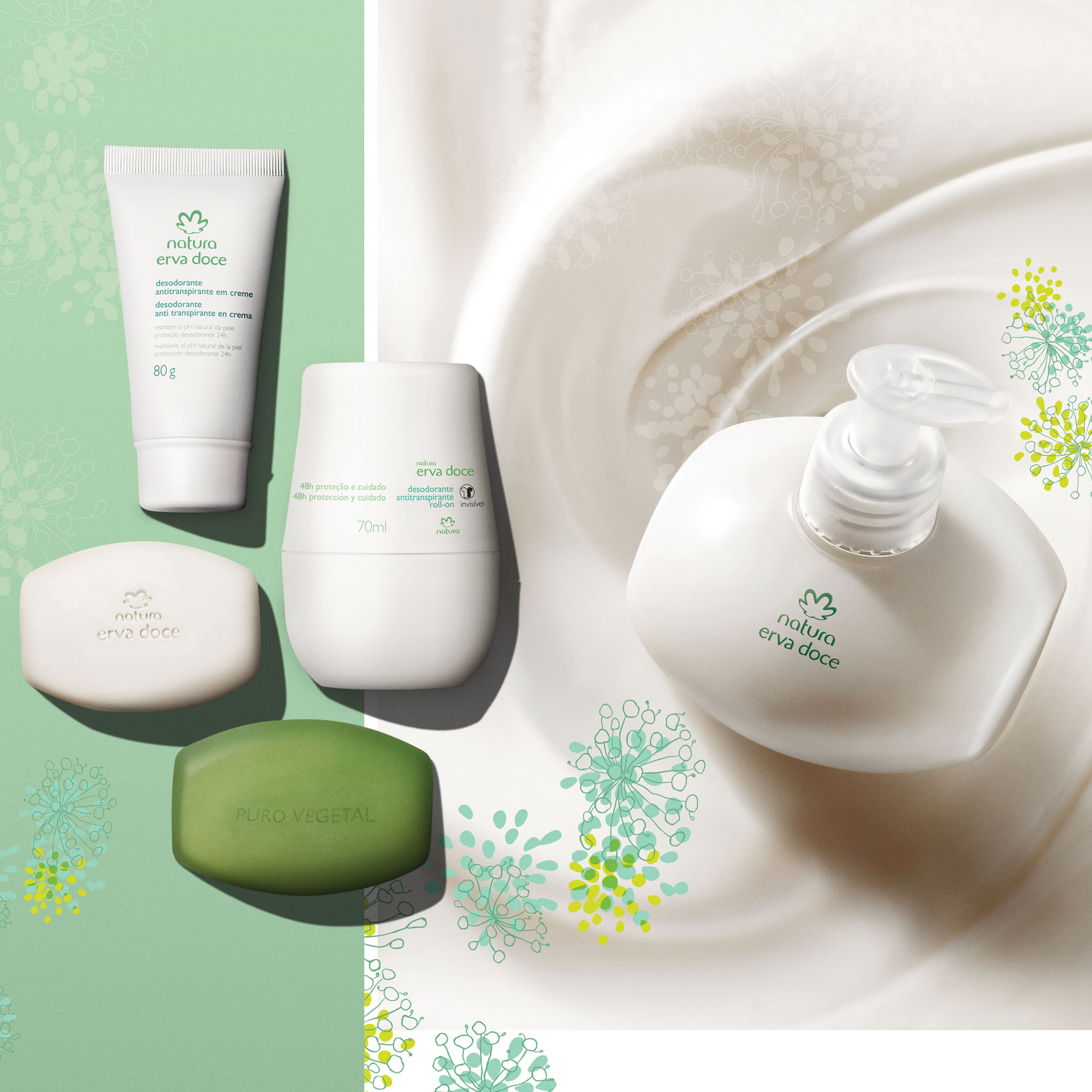 el aroma fresco y natural de la Erva Doce, es reconocible con los ojos cerrados. todo el mundo cree que lo conoce, incluso quien nunca lo usó. quien lo prueba por primera vez, se sorprende: la sensación es de algo nuevo y, al mismo tiempo, misteriosamente familiar.