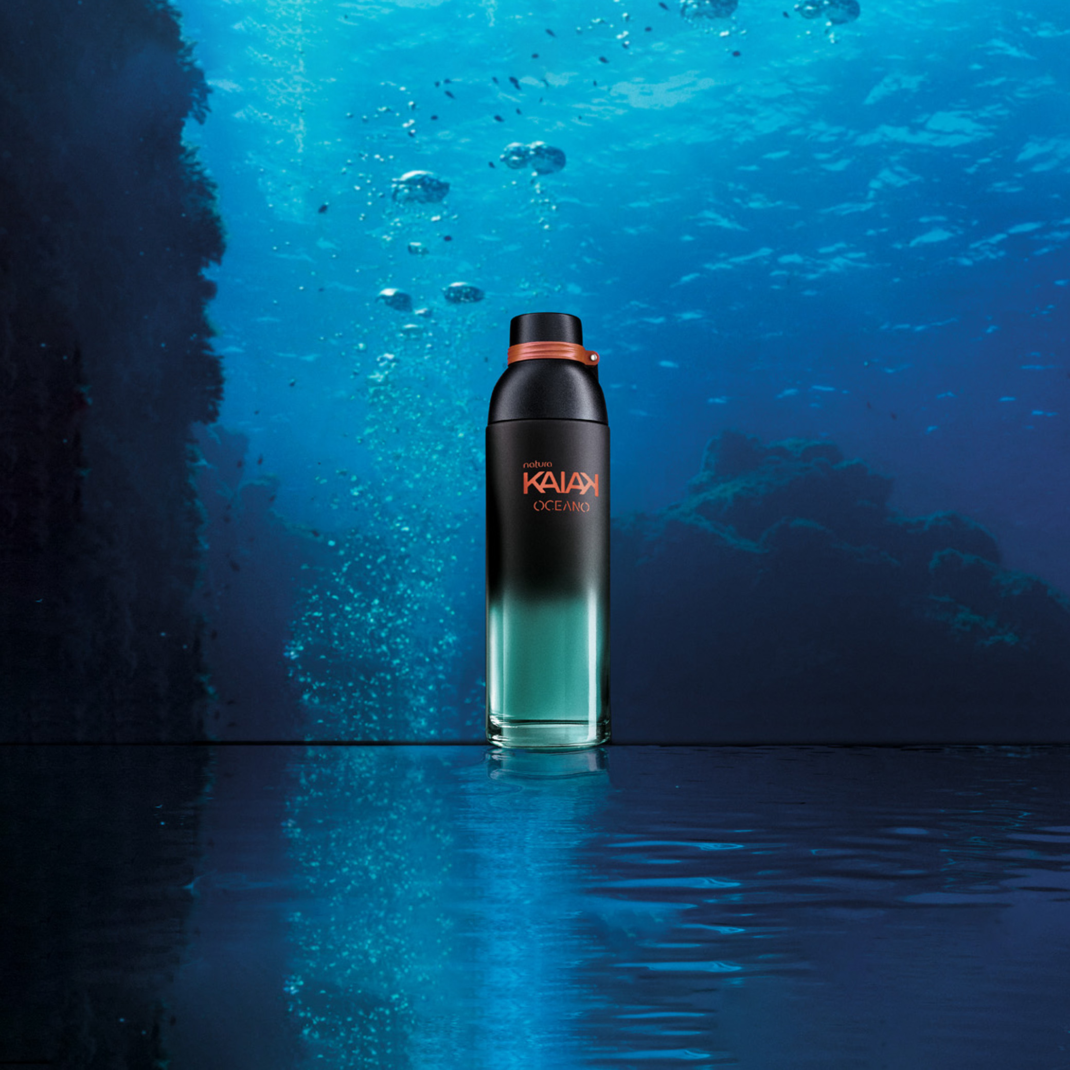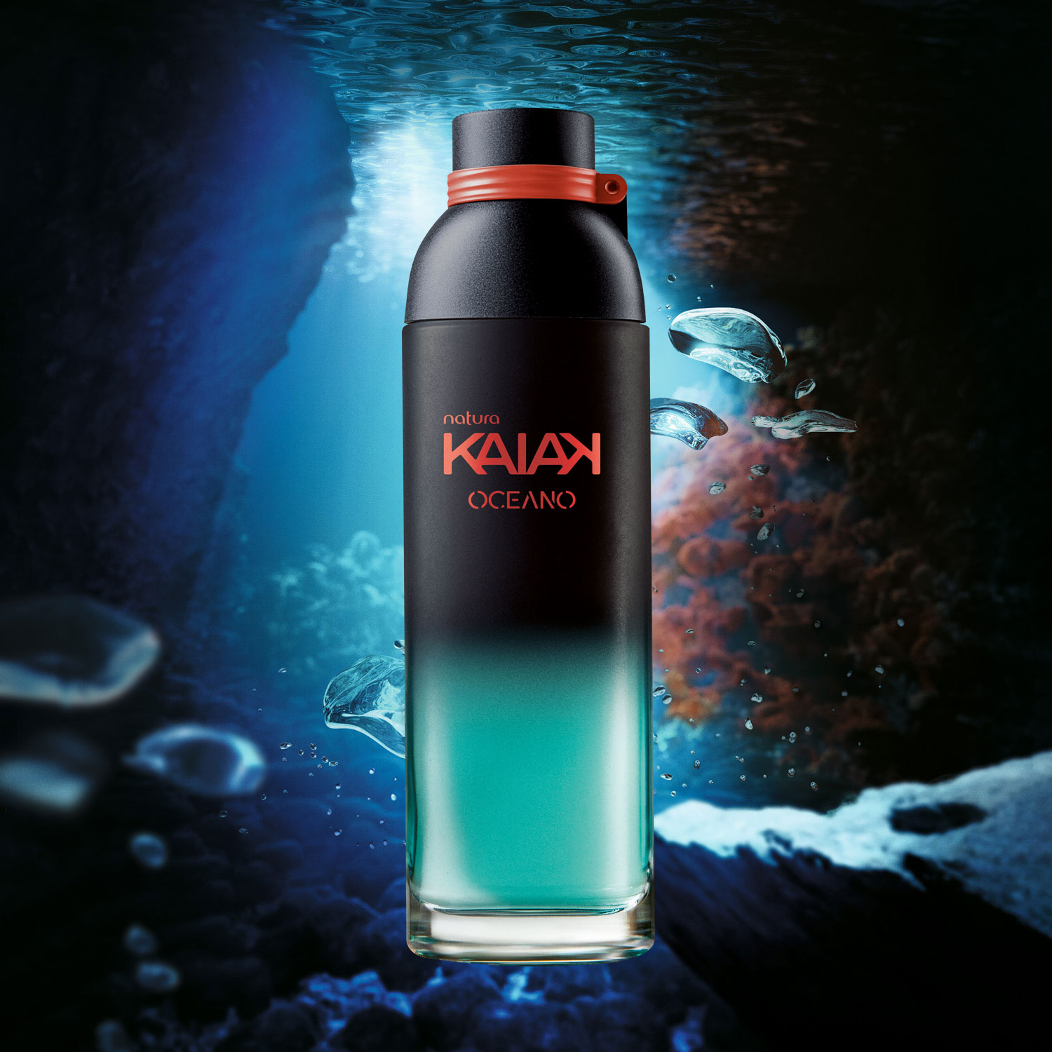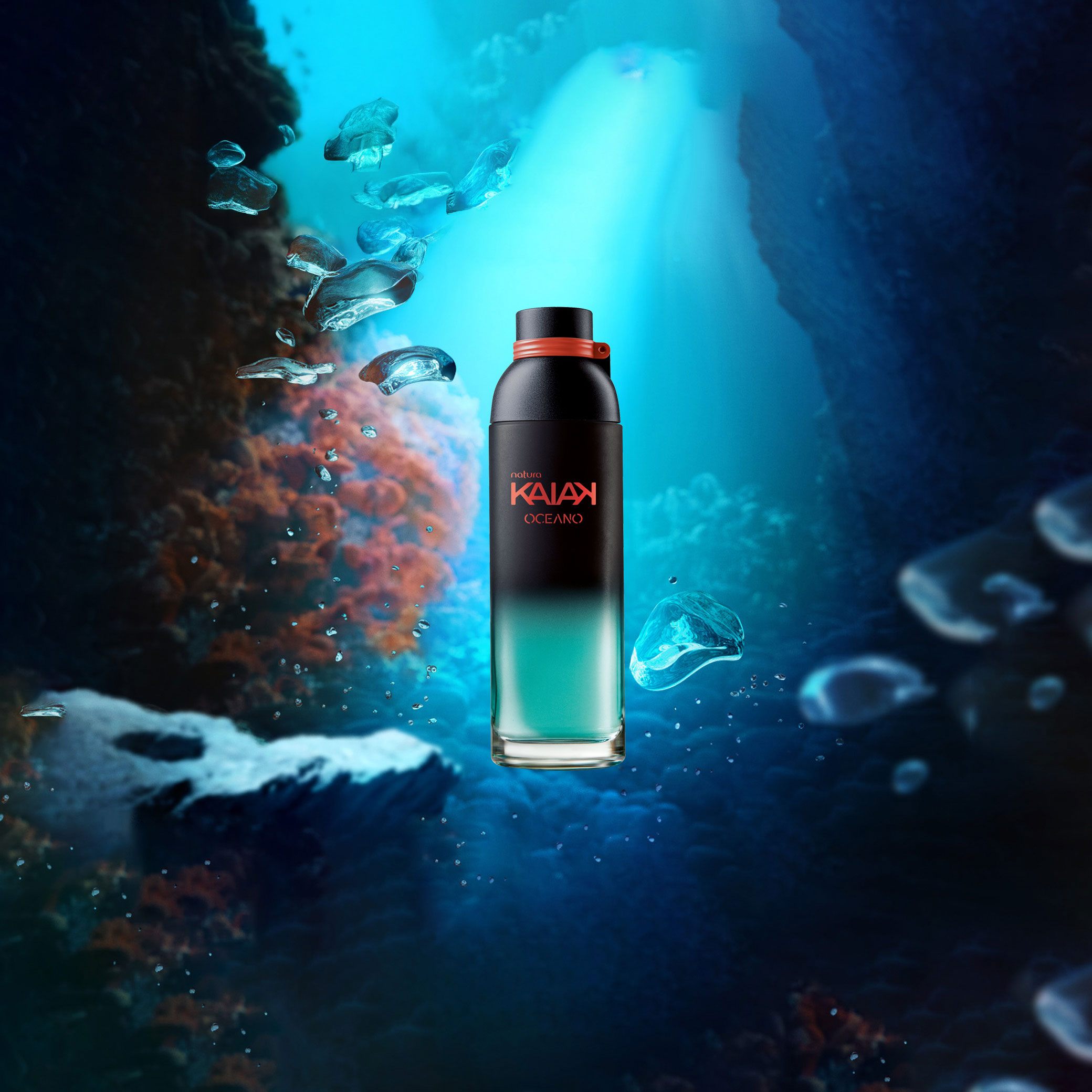 Natura Kaiak Oceano Femenino es la emoción única de explorar los jardines de coral en el fondo del mar. esta fragancia floral acuática combina notas frescas de algas marinas y matices frutales, armonizando con la densidad del ámbar marino y un toque especial de frescura de la pataqueira, ingrediente de la biodiversidad brasileña.