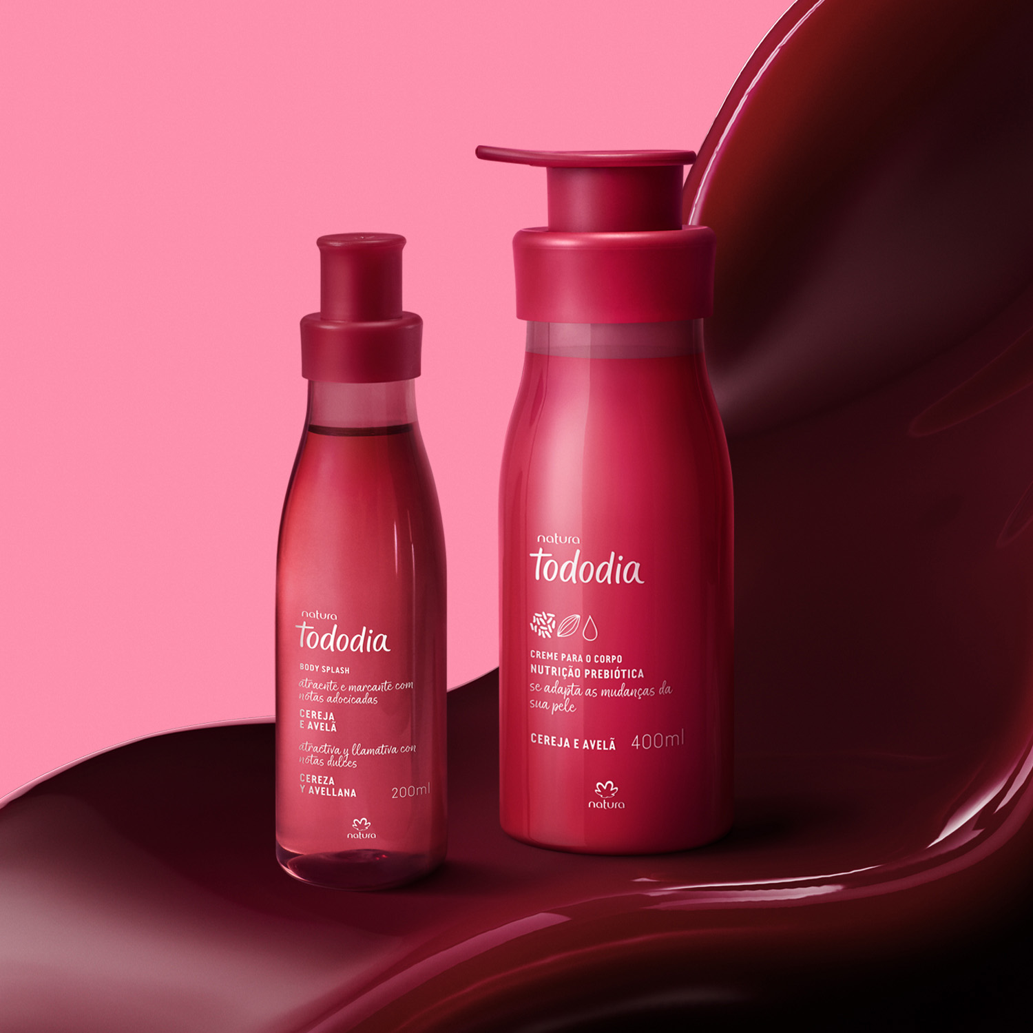 siente en tu piel el placer de la hidratación perfumada con el poder de la nutrición prebiótica en tu fragancia atractiva favorita. una línea completa de productos con el dulce delicioso e inconfundible de Cereza y Avellana. cuidado envolvente desde el baño hasta la hidratación diaria de la piel y los labios