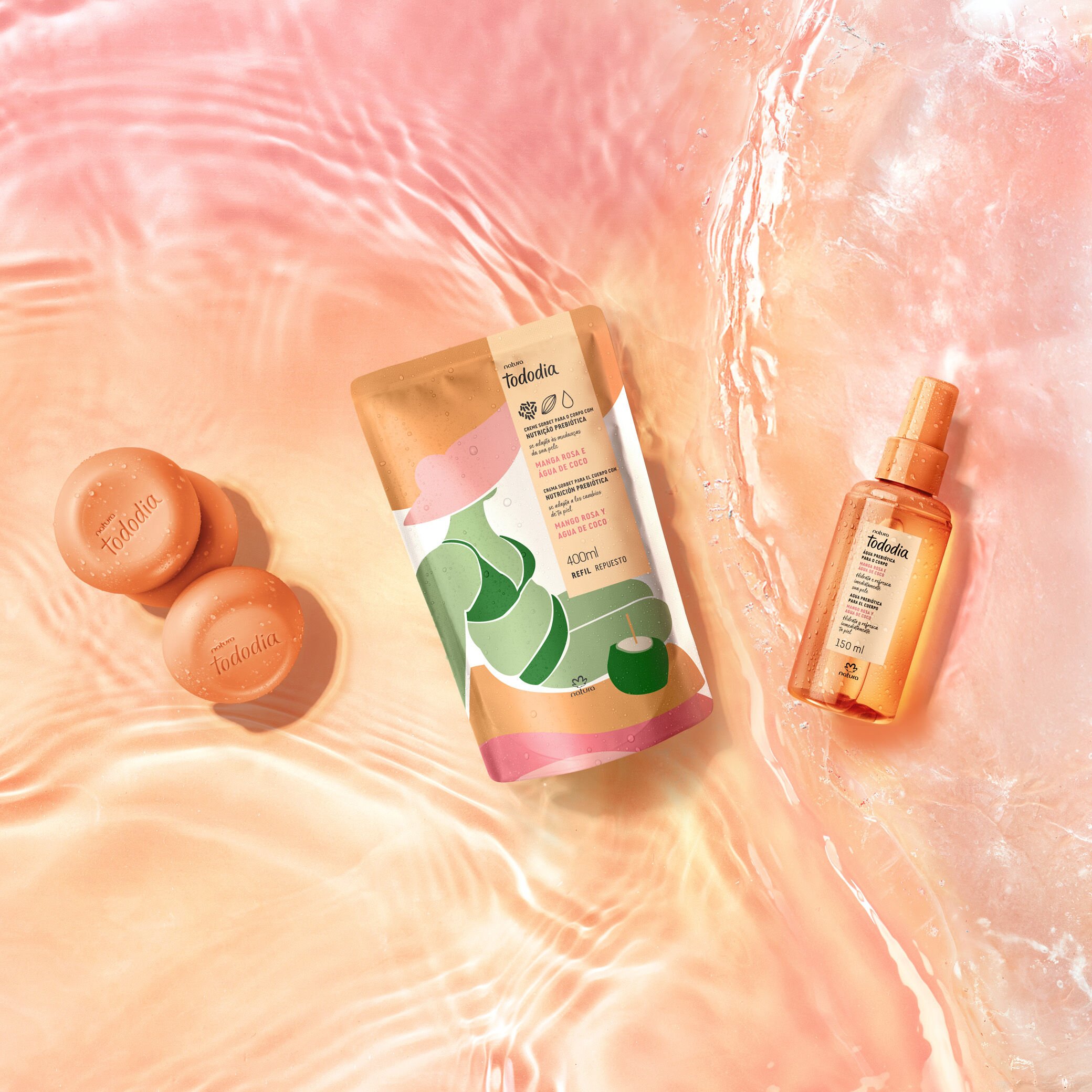 la línea Mango Rosa y Agua de Coco de Natura combina hidratación intensa con una fragancia frutal, ligera y refrescante. siente el toque suave y revitalizante en la piel, ideal para los días calurosos, proporcionando frescura y cuidado durante todo el día