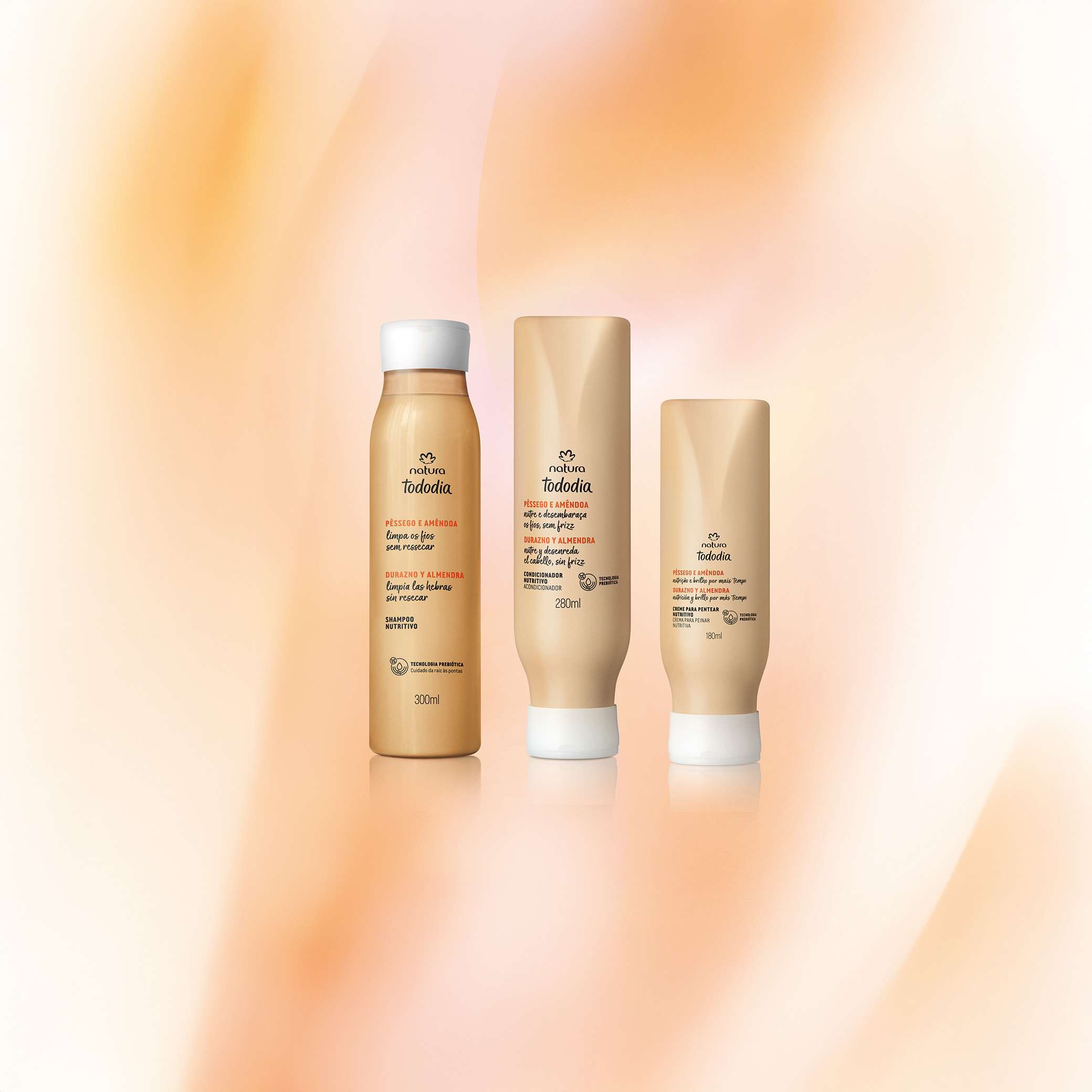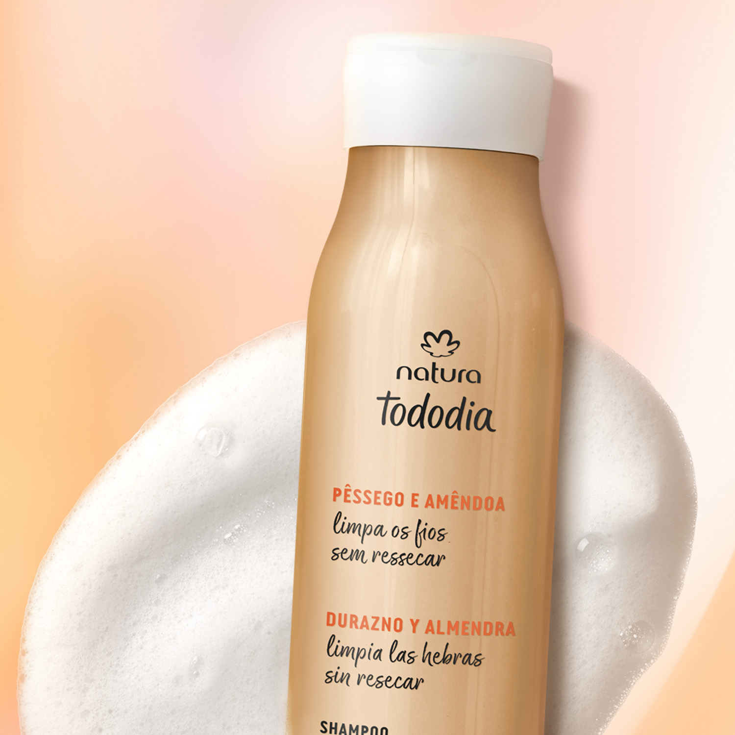 Natura Tododia combina los mejores nutrientes para tu cabello, con prebióticos que protegen y equilibran el cuero cabelludo. todo para que tu cabello luzca más bonito y saludable cada día. la línea con aceite de almendra nutre y devuelve el brillo natural